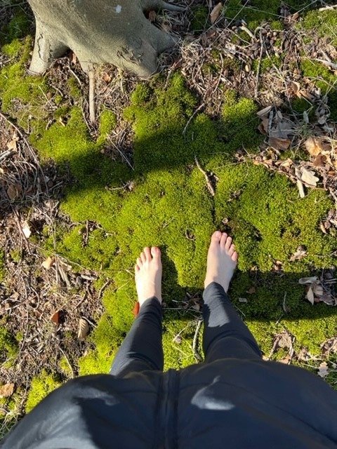 - Vi går en långsam och (i största mån) tyst mindfulnesspromenad i skogen där vi observerar och känner in vad som händer i naturen just nu. Vi plockar lite naturmaterial på vägen. För att komma så nära moder jord som möjligt och riktigt jorda dig rekommenderar jag varmt att gå barfota, åtminstone en liten bit. Läs mer om detta under Naturlig rörelse.